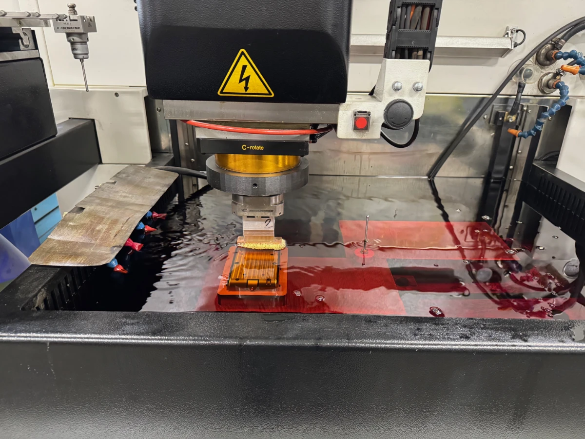 V současné době nabízíme zpracování značně tvrdých, kalených vodivých materiálů které nelze zpracovat jinak než elektroerozivní cestou tzv. drátové řezání. Obrábět lze součásti určené na střižné nástroje, formy, náhradní díly ke strojům atd. Principem je oddělování materiálu pomocí elektrického výboje řezacího drátu a obráběné součásti. Takto lze vytvořit velice přesné vnější křivky i otvory různých tvarů, drážky atd.